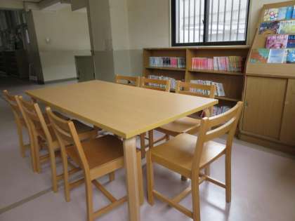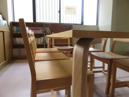 今年の校長経営戦略予算の加算申請で、木調の椅子に合う机を申請したところ予算がおりました。本を読む習慣をつけるためにどんどん活用してください。