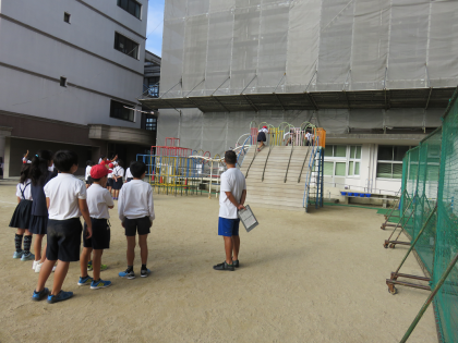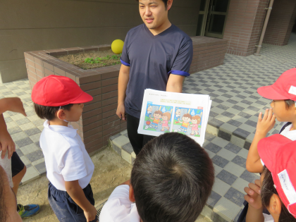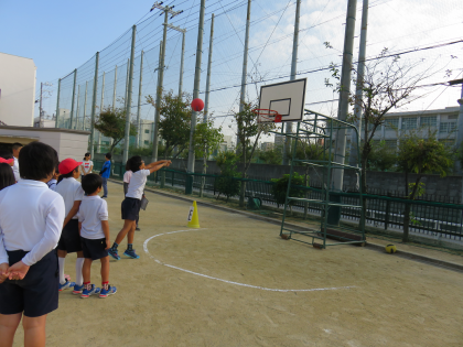 いろいろな遊びを順番にまわって得点を競いました。大切なことはどの遊びを誰がするかきちんと話し合うことや始めと終わりにしっかりあいさつができることです。班としてまとまった行動ができるよう遊びの中から学びます。