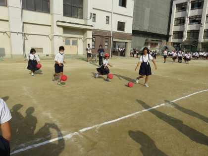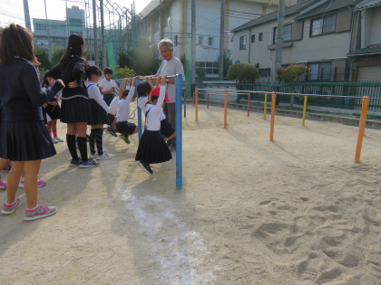 下 決まった時間、鉄棒にぶらさがる。足がついたら失敗です。