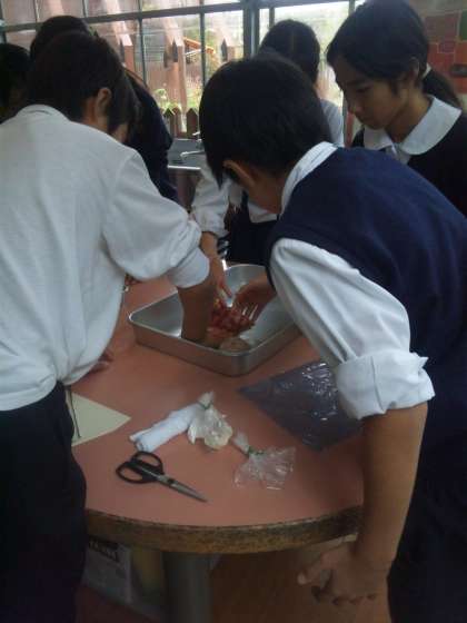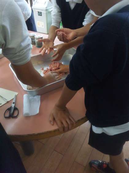豚のひき肉に氷を入れて粘りがでるまでこねます。
