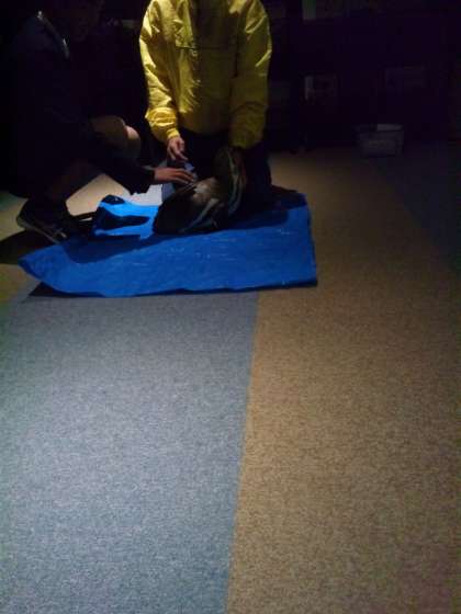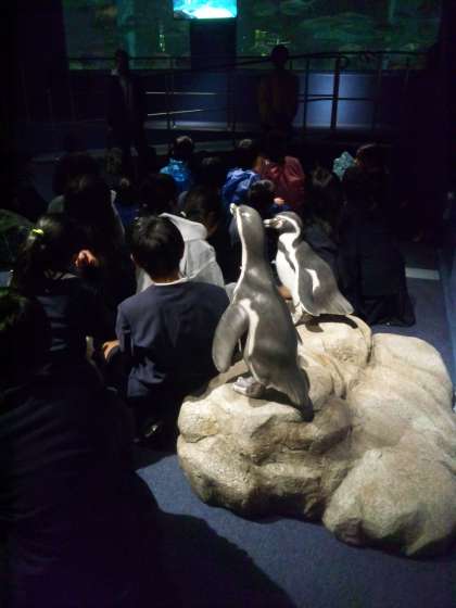 夜の志摩マリンランドでは、ペンギンのたかちゃんの背中に一人ずつタッチさせてもらいました。