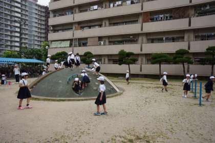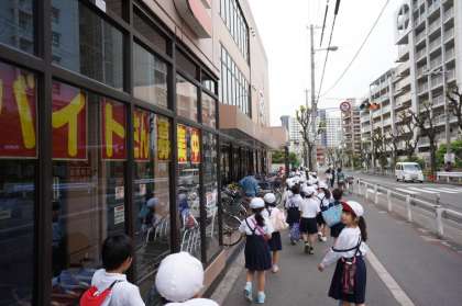 大正高校の近くの住宅にある公園で遊んでから、校区の南端にあるライフの横を通りました。