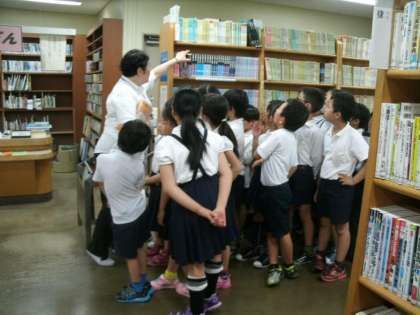 実際に本の置いてある図書館の見学と大正図書館の説明や絵本を読んでもらう体験を1組と2組が交代でしてもらいました。とても優しく丁寧に教えていただきました。