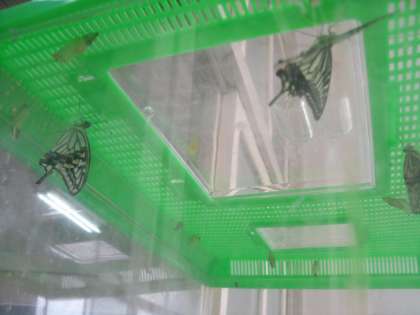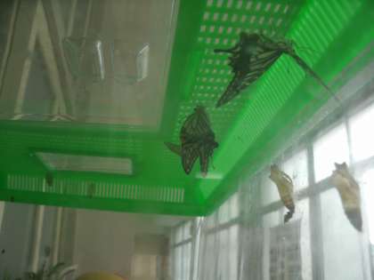 たまごだったアゲハチョウが、幼虫から蛹(さなぎ)になり、羽化(変態して成虫になる)してアゲハチョウになりました。小さくしわのある羽が次第に広がっていく様子を見ることができました。