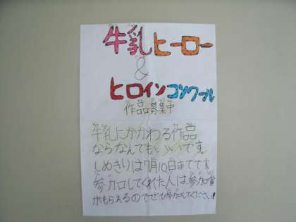 成長期に欠かせない「牛乳」をヒーローやヒロインのようにイメージするとどんな風になるか描いてみよう。というコンテストに学校全体で応募することに決めました。