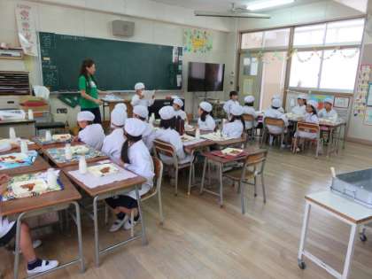 1学期は、同学年同士で交流します。ただ、1年生と4年生は1学級ずつなので学年を越えた交流給食となりました。