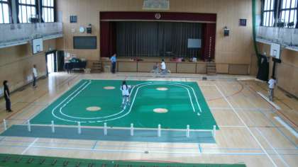 8月9日、東京で行われる第52回交通安全自転車全国大会に向けて、練習が続けられています。大阪府大会よりも、難しく、S字、8の字、はしごと種目も増えています。スラロームは、ピンとピンの間が狭くなっているそうです。毎日、暑い講堂で頑張っています。