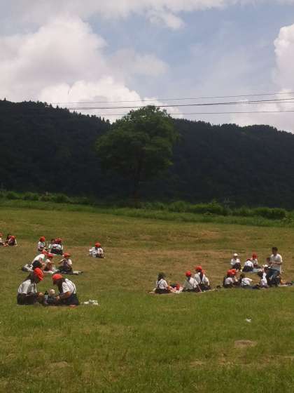 山の天気は変わりやすいの言葉通りの事が発生しました。強くはないですが雨が降ってきてしまいました。近くの関宮交流促進センターに雨宿りをしています。
