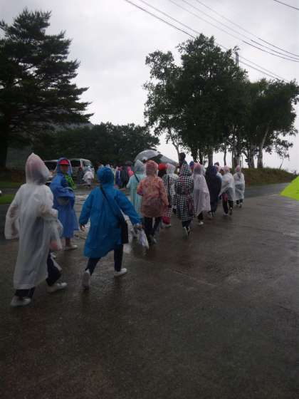 少し雨脚が弱くなったところで、魚つかみに出発しましたが、本気で降り始めてしまいました。