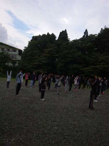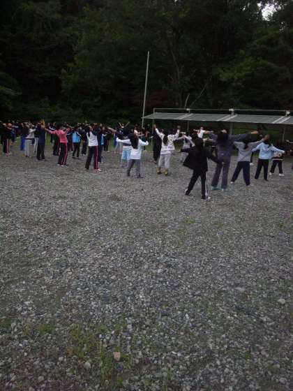 ほとんどの子ども達が眠そうな顔をしています。ラジオ体操で体をほぐして今日の活動に備えます。