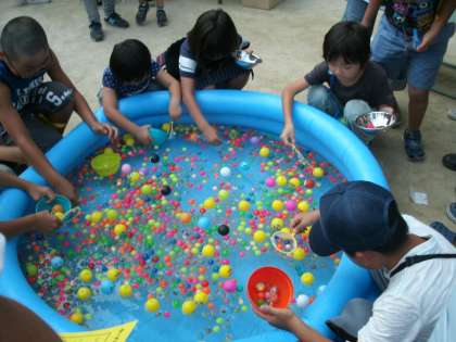 ヨーヨー釣り、スーパーボールすくい、持ちきれないほど吊り上げる子もいれば、すぐにポイが破れてしまう子もいます。何度もチャレンジできますよ。