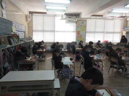 全校で、漢字検定に取り組み始めて4年目になります。6年生は卒業があるので他の学年よりは早く実施します。