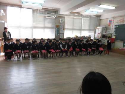 1年1組 1年間の思いで発表会 できるようになってうれしかったことを保護者の皆さんの前で一人一人の言葉で発表しました。