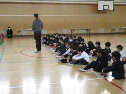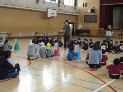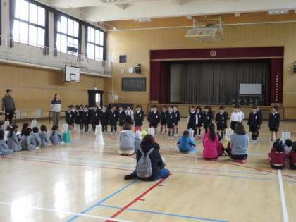 来年の4月から小学校の1年生になる幼稚園、保育所、保育園からたくさんの子ども達が中泉尾小学校に来てくれました。自分の通っている幼稚園、保育所、保育園の名前を大きな声で言うことができていました。