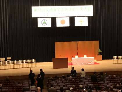 東京の文京シビックホールで行われた表彰式の会場の様子です。会が始まると全国から集まって来られた方々で一杯になりました。大会看板の前は写真を撮る人で行列ができていました。