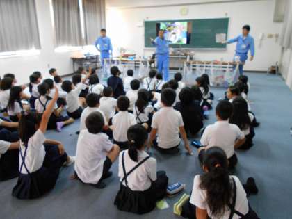 今日の2・3時間目に、西部環境事業センターの方々が学校に来られて、出前授業を受けました。ごみを減らす方法を教えてもらったり、ごみの分別の仕方をクイズでしたりして、楽しく活動しました。