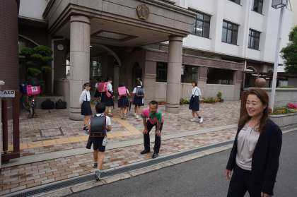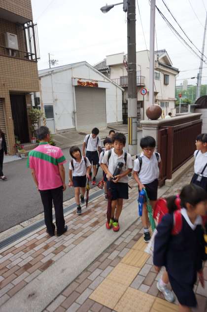 5月31日(木)朝の登校時刻に、大正区役所から吉田区長が来られ、児童とあいさつを交わされました。この日は児童会の活動の一つである「あいさつ運動」も行われており、児童と一緒にあいさつの啓発をしていただきました。