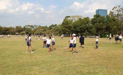 オリエンテーリングのゴールは西の丸庭園でした。広々とした芝生広場で、縦割り班のきずなを深めることができていたと思います。