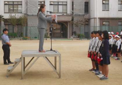 今日の全校朝会は月末なので教頭先生からのお話でした。「あいさつをしっかりよう」「名札を付け、身だしなみを整えよう」「ふわふわの言葉の木にもっと参加しよう」という話でした。また、キックベースチームが表彰されました。活躍が増え、結果も出せていることが素晴らしいです。その後、全校オリエンテーリングの順位発表がありました。1位は2班でした。どの班もよく協力して頑張っていたと思います。11月に玄関に各班の写真が掲示されるので、ぜひご覧ください。
