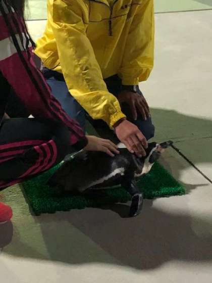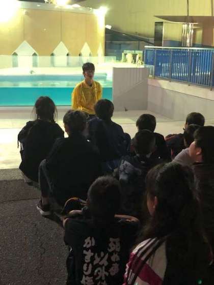 夜のマリンランドに来ました。ます迎えてくれたのはペンギンのマリンちゃん。1人ずつ背中をタッチさせてもらいました。