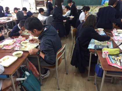 1回目は、違う学年の人たちと給食を食べましたが、今回は、学校におられるいろいろな先生や職員の人たちと一緒に給食を食べました。