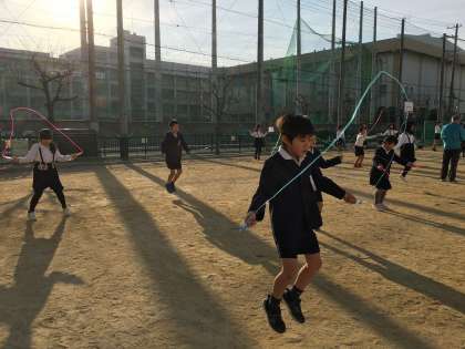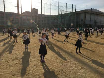 朝のかけ足運動に続きこれからなわとび運動が始まりました。