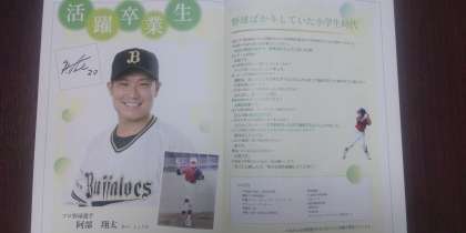 ちなみに、現在、オリックスバファローズで活躍されている阿部 翔太投手は、中泉尾小学校の卒業生です。昨年度、児童の皆さんにお渡しした「大阪市立中泉尾小学校創立百周年記念誌」にも、ご本人のプロフィールが掲載されています。今の6年生の児童の中から、将来、阿部 翔太投手のようなプロ野球選手が誕生するかもしれませんね。