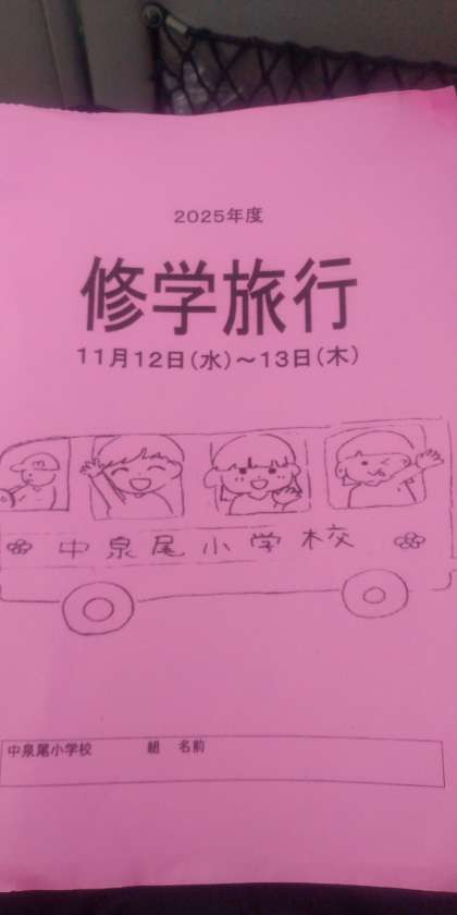 修学旅行のバスは、子どもたちの笑顔を乗せて、予定通りに7時30分に出発しました。
