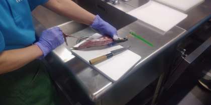 これから、添付している写真の「かます」をさばきます。