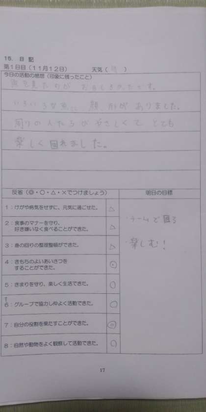 楽しい時間は、あっという間に過ぎるものですね。もう、就寝の時刻です。