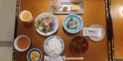 子どもたちは、朝のお散歩を終えて、朝ごはんを食べています。