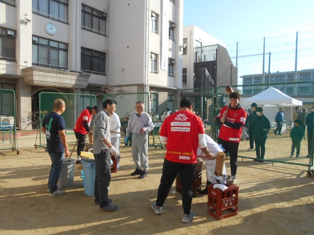 下記の写真にあるように、今年度はラグビーチーム「レッドハリケーンズ大阪」の選手の皆さんが、応援に駆けつけてくれました。そして、子どもたちや保護者の皆さんと一緒に、おもちをついてくれました。ありがとうございました。