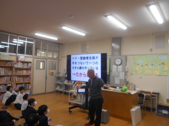 5年生の先生方とも相談した結果、今回の「骨髄バンクって何?」の講演会を実施することにしました。今回は、何と「骨髄移植を受けた方」と「骨髄移植をした方」のお二人が、講師として来てくださいました。