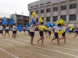 2年生 団体演技 「みんなと今日は最高だ」 音楽に合わせてバトンを振るとモール...