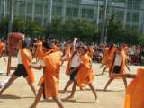 オレンジの法被が青空のもと力強くひるがえります。