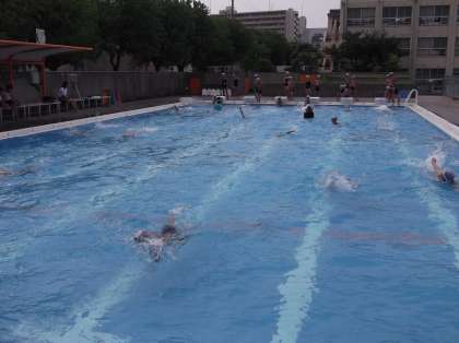 9月2日(火)の5,6時間目に5年生の水泳学習をしました。今年度の泳ぎ納めです。子どもたちのがんばりが記録の大幅アップにつながりました。今日も記録をとってみると、400m泳げる児童が何人かいました。まだまだ泳げそうでしたが、時間の都合で400mまでにしました。