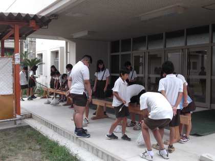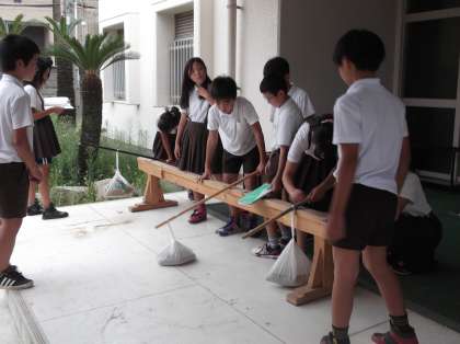 6年生の理科の実験風景です。てこの実験をしています。支点・力点・作用点を学習し、”それぞれの位置をどうすれば重いものを少しの力で持ち上げることができるのか。”をみんなで確認しました。