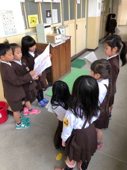 2年生は、1年生にはっきりと大きな声で、教室紹介をすることができました。手をつないでやさしく教えている姿がとても頼もしかったです。