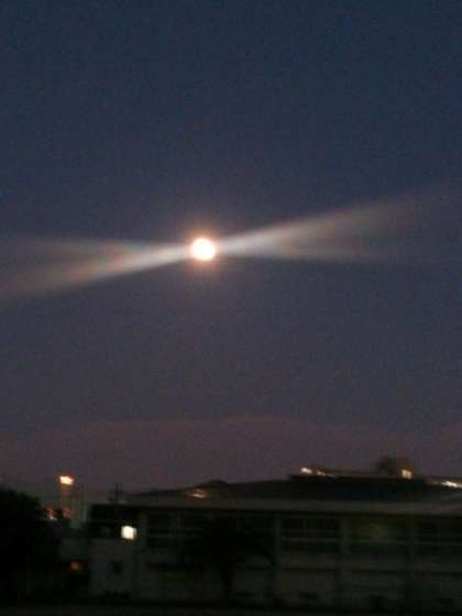 昨夜、運動場から東をのぞむと、体育館の上に見事なお月様が見えました。左下にあべのハルカスも写っています。涼しくなった宵の内(夜のはじめ)に、名月を見上げて心が落ち着きました。もう秋ですね。