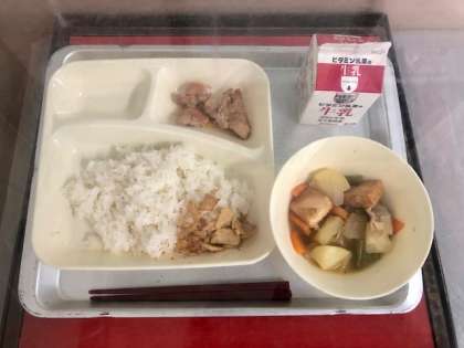 ごまかかいためは、たけのこに、かつおぶしとごまの風味をきかせた、ご飯がすすむ献立です。たけのこの旬は、4月から5月にかけてです。たけのこの風味や歯ごたえが感じられるよう、たんざく切りにしています。