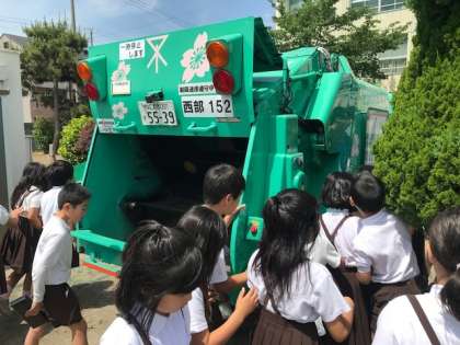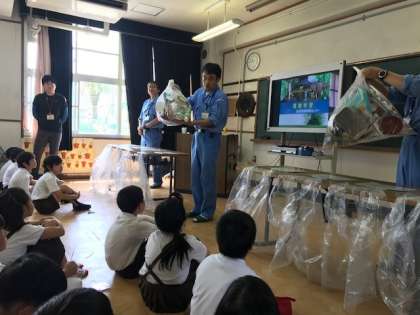 4年生では「ごみと社会」の学習のまとめとして大阪市環境局西部事務所の職員の方に来校いただきお話を聞き取りました。ごみと地球環境のかかわりや、ごみの分別方法などについて、クイズや体験を交えながら詳しく教えていただきました。2時間の学習後、子どもたちは「これからはしっかりとごみを分別し、ごみの減量をめざしたい」と感想を発表していました。