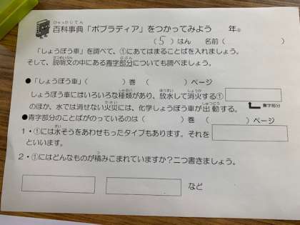 それぞれの班に与えられた言葉を、ポプラディアを使って調べます。