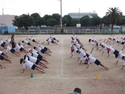 連休明けの本日は気温が30度を超え、5日ぶりに真夏日でした。太陽が雲に隠れると風が吹いて気持ちよかったのですが、太陽が出るととても暑かったです。そんな中、こまめに水分補給を取りながら運動会練習を行なっています。水筒・タオルの忘れ物がないように、ご家庭での声かけよろしくお願いします。