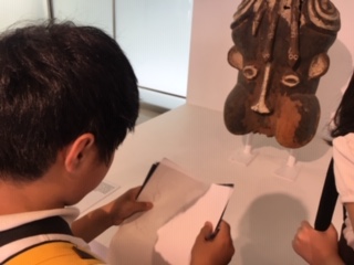 様々な民族の道具や衣装、楽器や家などがあり、興味津々で説明を読んでいました。「これは何に使う道具かな?」「この虫の形の入れ物何かな?棺桶!!」など、色々なものに触れて、世界の民族について少し興味を持ったようでした。