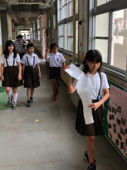 先週から「廊下階段を歩こう」と児童会が呼びかけ、学校全体で「ストップランニング運動」を実施しています。