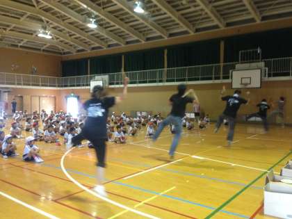 その時間にちょうど3・4年生が練習していたので、無理を言って子どもたちの前で踊っていただきました。