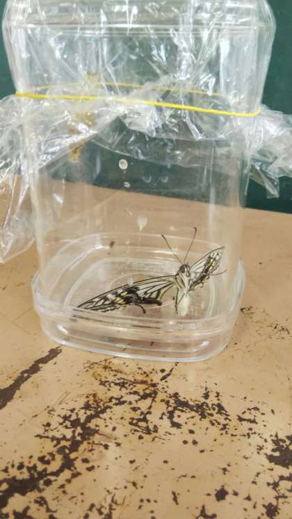 3年生の理科の学習で育てていたアゲハ蝶の幼虫がさなぎになり、今朝孵化して成虫になっていました。子どもたちは、大喜びで「うわぁ、ちょうちょになってるー」と感激していました。