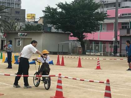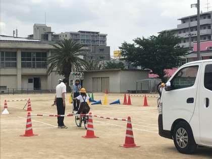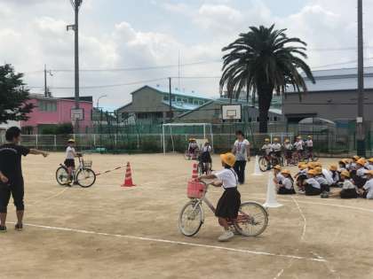 大正警察の方に来ていただき、交通安全教室を実施しました。自転車の乗り方や、横断歩道の歩き方などを教えていただきました。「止まれ」の標識についてや、車の制動距離についても説明していただき、改めて気をつけることを確認することができました。