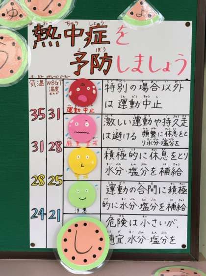これから暑い日が続きます。プールも始まりました。子ども達は、運動場でも元気いっぱい遊んでいます。「喉が渇いた感じがしなくても、水分補給をしましょう」と学校全体で声かけをしています。