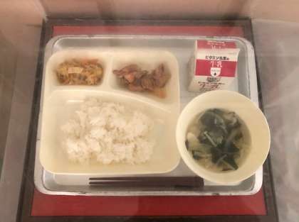 「五目汁」は、かまぼこ、キャベツ、たまねぎ、えのきたけ、乾燥わかめを使用した具だくさんの汁ものです。